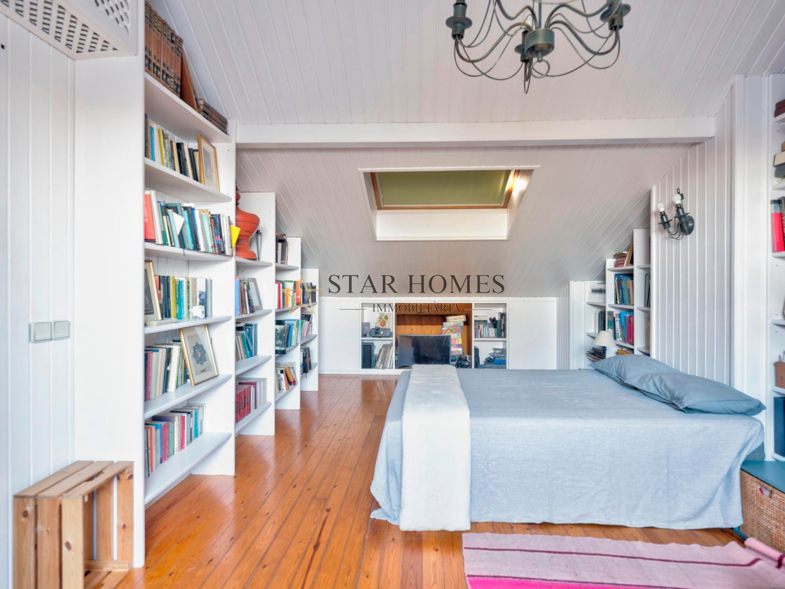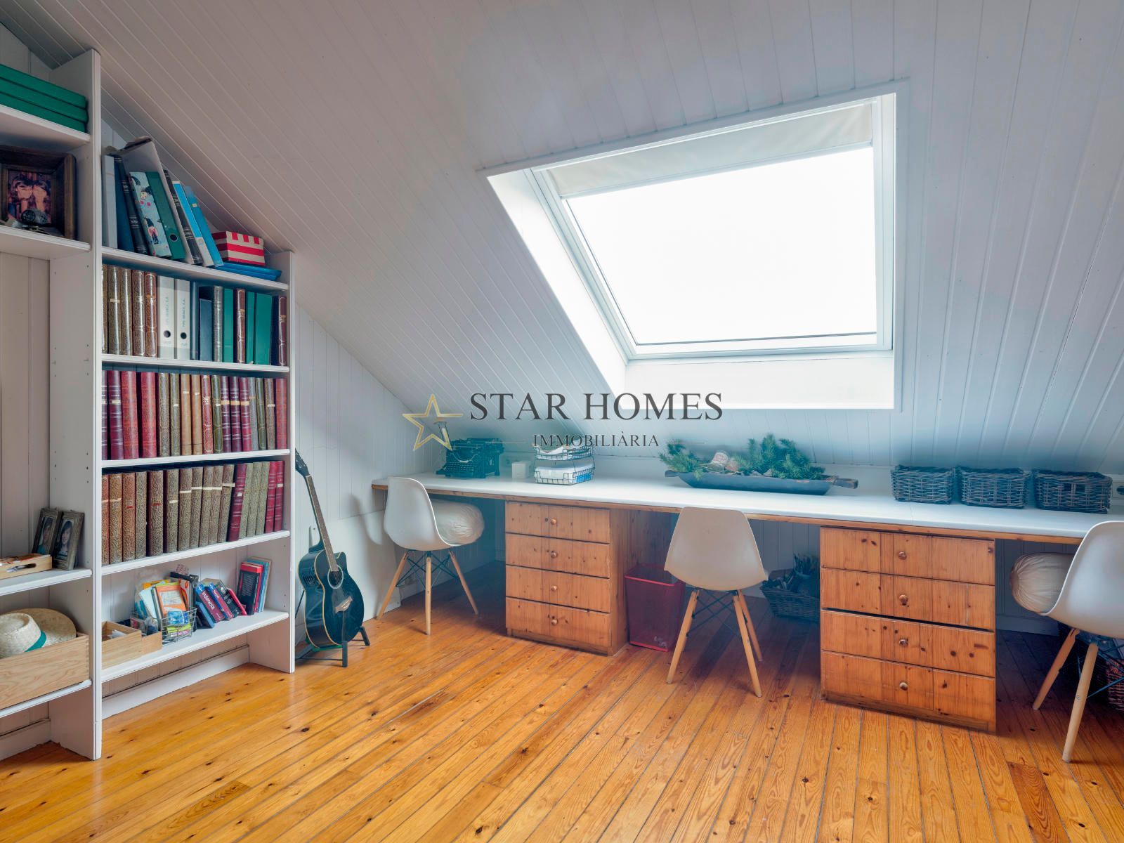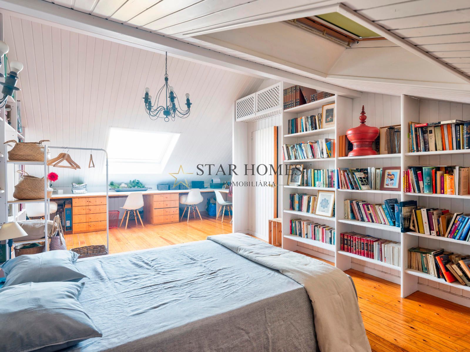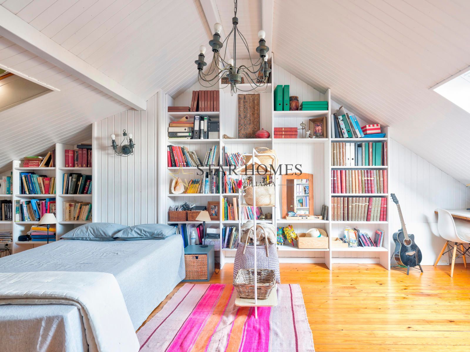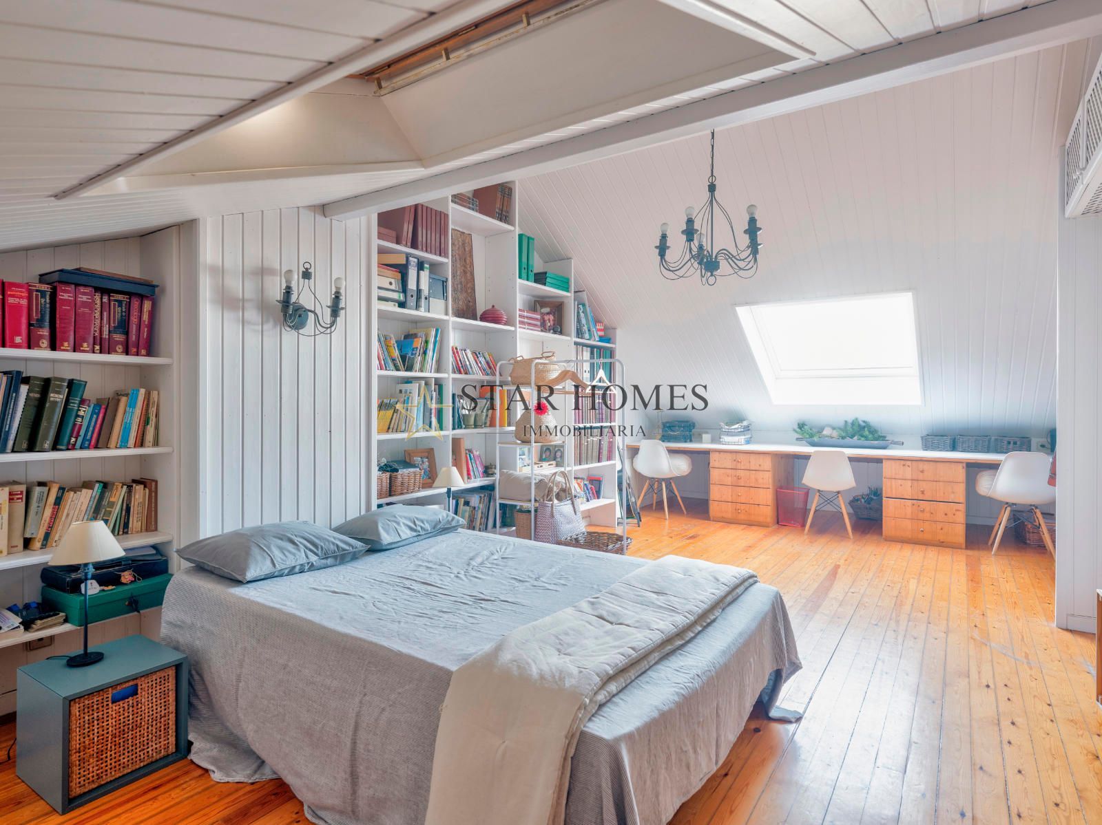 La buhardilla, utilizada como cuarta habitación, ofrece un espacio luminoso y único con vistas al mar, perfecto como dormitorio, despacho o sala polivalente. Los suelos de parquet aportan calidez y estilo a toda la vivienda.