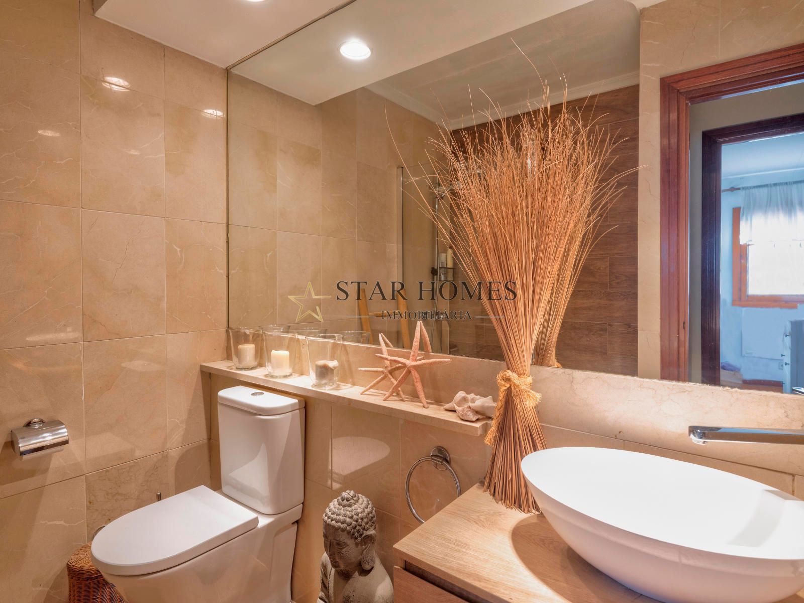 En la primera planta se distribuye la zona de habitaciones, donde destaca una suite con vestidor y su baño completo, moderno y elegante. En esta planta también encontramos otro baño completo, igualmente reformado y en excelente estado. Además, la vivienda cuenta con aire acondicionado en esta planta y calefacción en toda la casa, garantizando confort total durante todo el año.