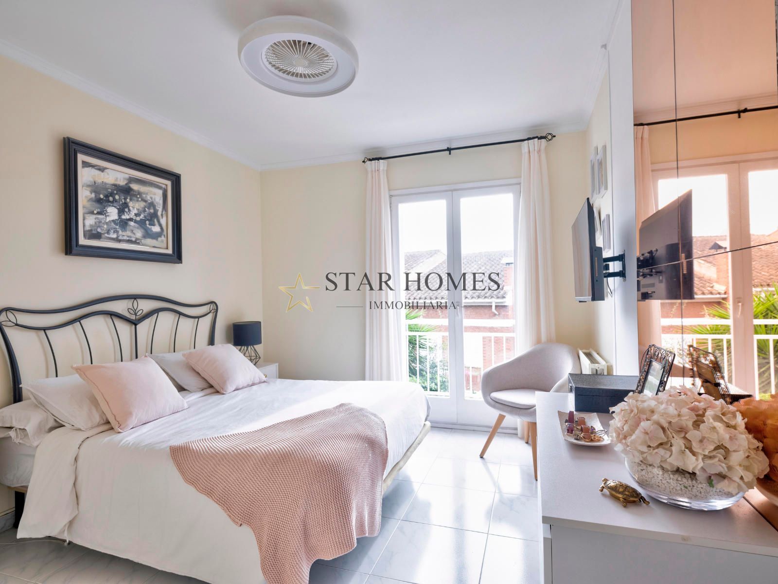 En la primera planta se ubican cuatro habitaciones exteriores, muy luminosas y todas con salida a balcón. Esta planta dispone de dos baños completos, uno con ducha y otro integrado en la suite principal, que cuenta con bañera y con acceso a un balcón con vistas al jardín.
