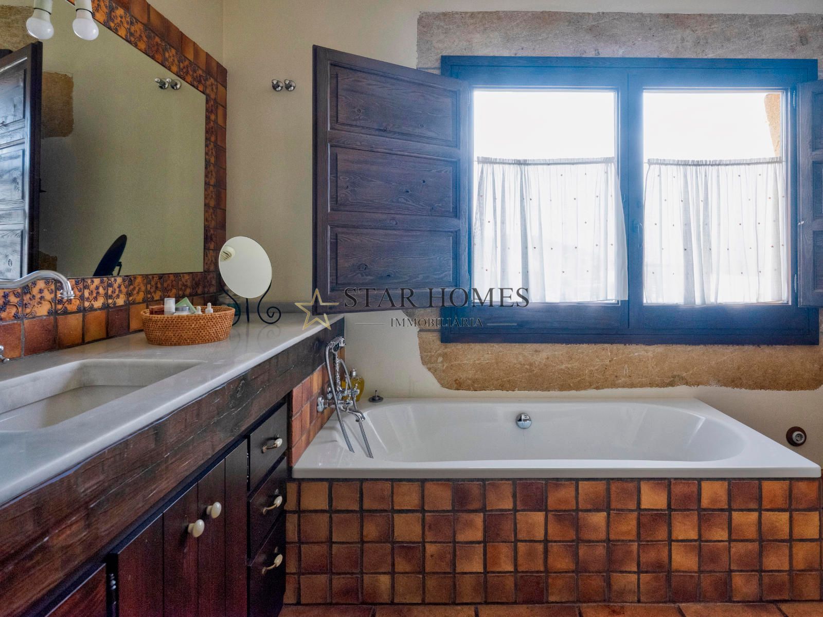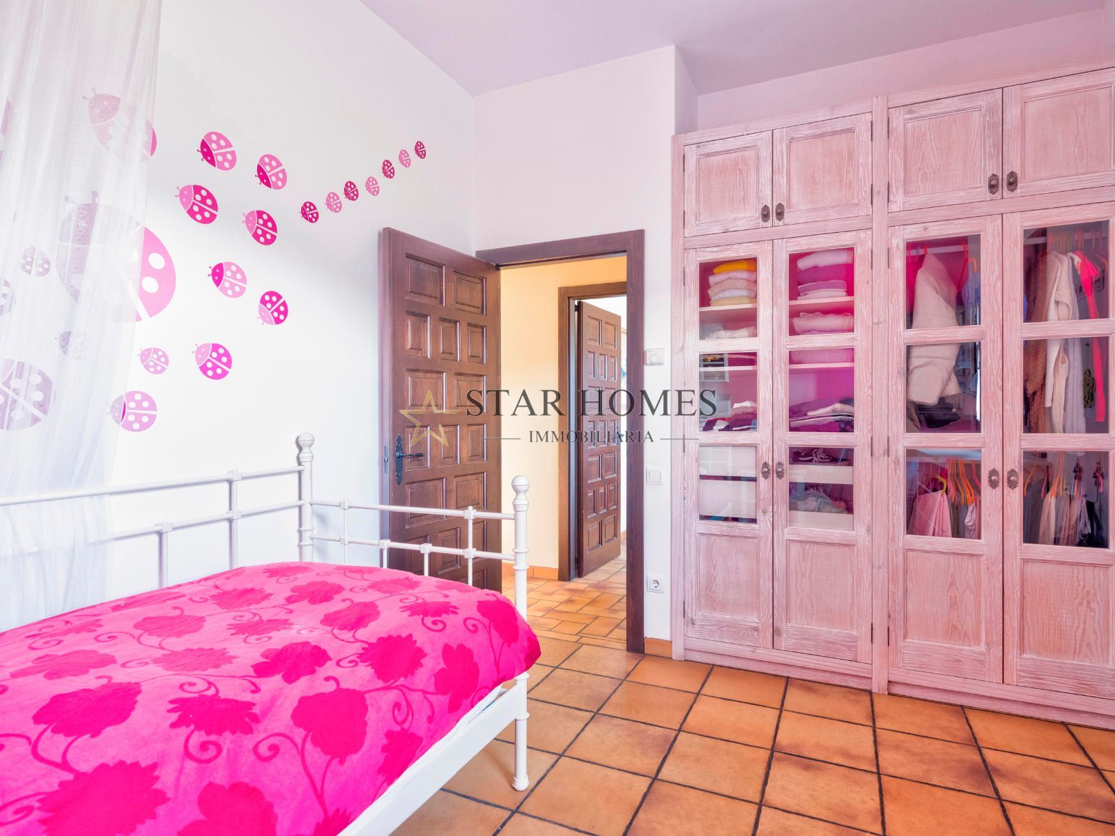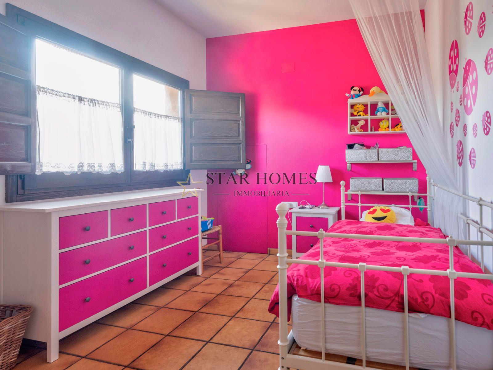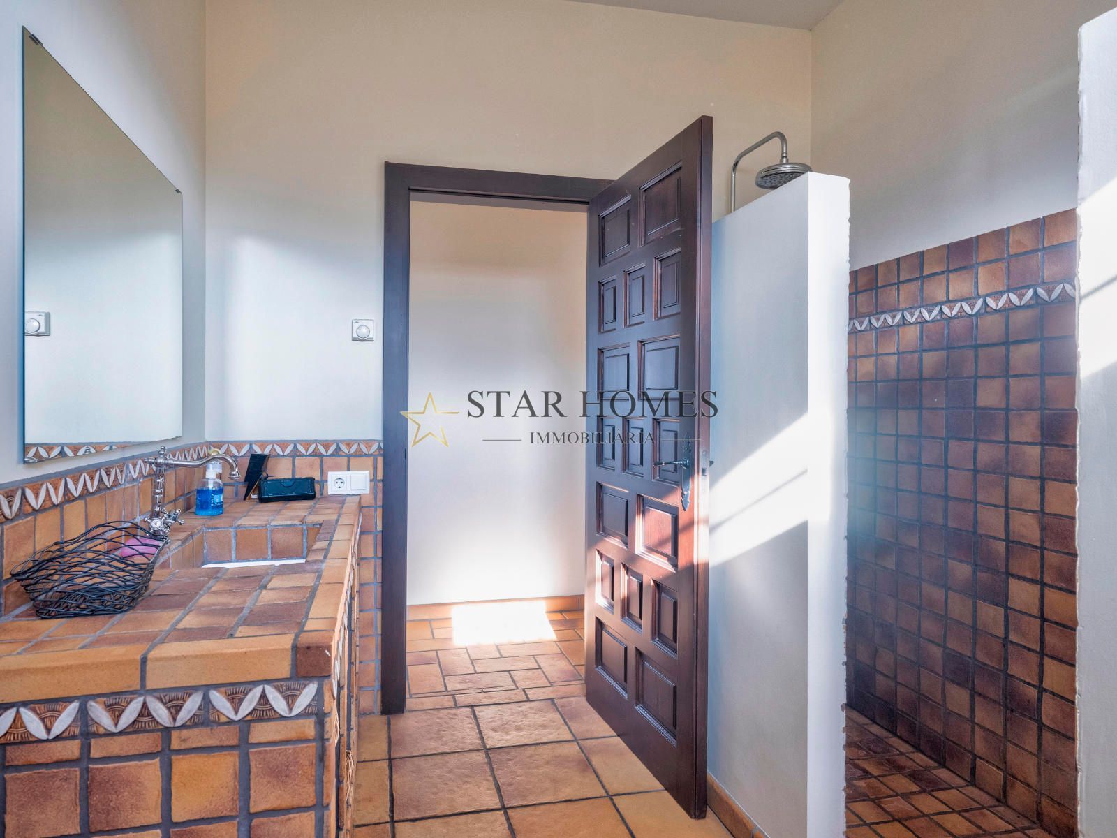 La planta superior alberga la zona de descanso. Aquí encontramos tres dormitorios dobles que comparten un baño completo, además de una espaciosa suite principal que cuenta con vestidor y un baño privado con ducha y bañera. Desde la suite se accede a una amplia terraza cubierta, un rincón privilegiado para disfrutar de la tranquilidad del entorno.